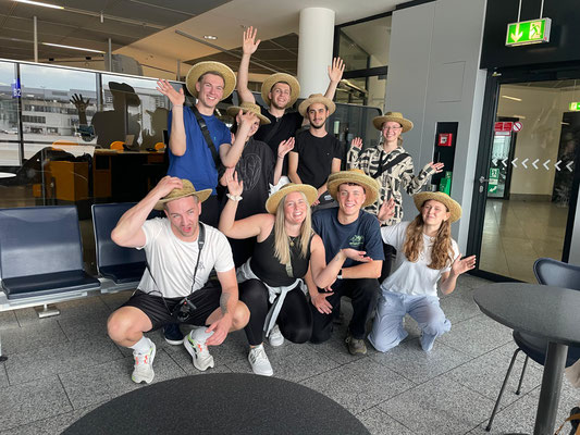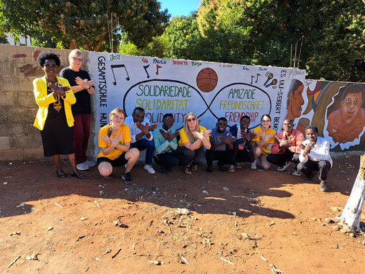 Im Juni machte sich eine Gruppe aus Hungen – neun Schüler:innen, zwei Lehrkräfte, Vertreterinnen des Schulpartnerschaftsvereins sowie eine ehemalige Schülerin und weitere Lehrkräfte aus Baunatal und Lübeck– auf den Weg nach Mosambik. Ziel war der Besuch der Partnerschulen in der Region um Chimoio. Schon der Beginn war aufregend: Für viele war es der erste Flug, dazu kamen Unsicherheiten über Land, Leute und Kultur. Doch bevor die Reise starten konnte, drohte sie zu scheitern – alle waren am Flughafen bereit zum Starten und der Flug wurde aufgrund politischer Umstände gestrichen. Dank großer Flexibilität der Eltern, des Organisationstalents von Frau Mauerhoff und der Entschlossenheit der Schüler:innen fand sich eine Lösung. In zwei Gruppen reiste man schließlich über unterschiedliche Routen nach Maputo.