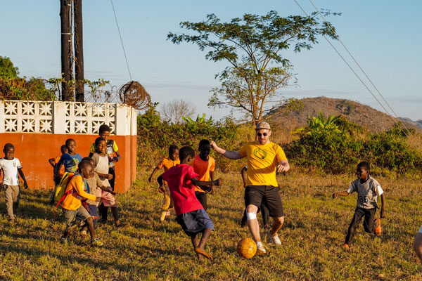 In Chibuto 2 wurden die Reisenden mit den klangvollsten Gesängen sowie dem leckersten Maracuja-Kuchen empfangen, wohingegen in Charonga sie ein Huhn als Opfergabe erhielten und mit den kleinen Grundschülern Fußball in malerischer Bilderbuchatmosphäre beim Sonnenuntergang spielten. Dabei entstanden Momente, in denen Sprachbarrieren keine Rolle spielten, weil Sport, Tanzen oder gemeinsames Singen für sich sprachen. Beeindruckend war die große Offenheit und Herzlichkeit, mit der die Mosambikaner an den Schulen den Empfang gestalteten.